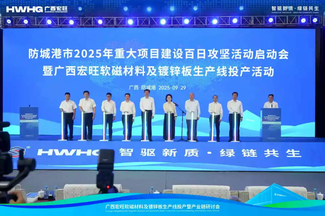广西宏旺成立于2024年1月,由宏旺控股集团与广西盛隆冶金合资组建,坐落于防城港市港口区。项目占地约500亩,总投资超30亿元,全面达产后将形成年产200万吨高性能硅钢及高端镀锌板材的规模,预计年产值约100亿元。项目的正式投产,标志着宏旺集团在绿色智能制造领域再启新程,为华南地区及“一带一路”沿线产业升级注入强劲动能。